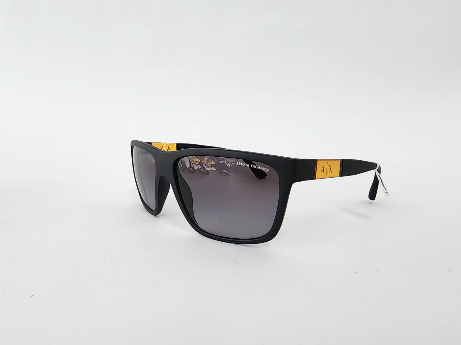 Gafas cuadradas de estilo moderno en mate negro, lentes polarizados con degradado gris. Equilibran estilo contemporáneo con protección ocular avanzada.