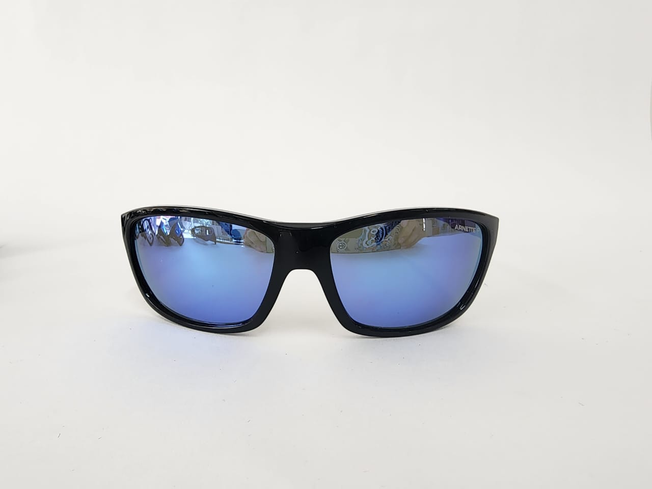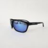 Gafas de sol ovaladas y elegantes en acetato negro con lentes espejados grisáceos. Diseño sofisticado, ligero y con acabado moderno.