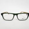 Montura cuadrada clásica en acetato verde mate, con interior cómodo y acabado sobrio. Ligera y resistente, ideal para graduación y uso diario con un toque distintivo de color.