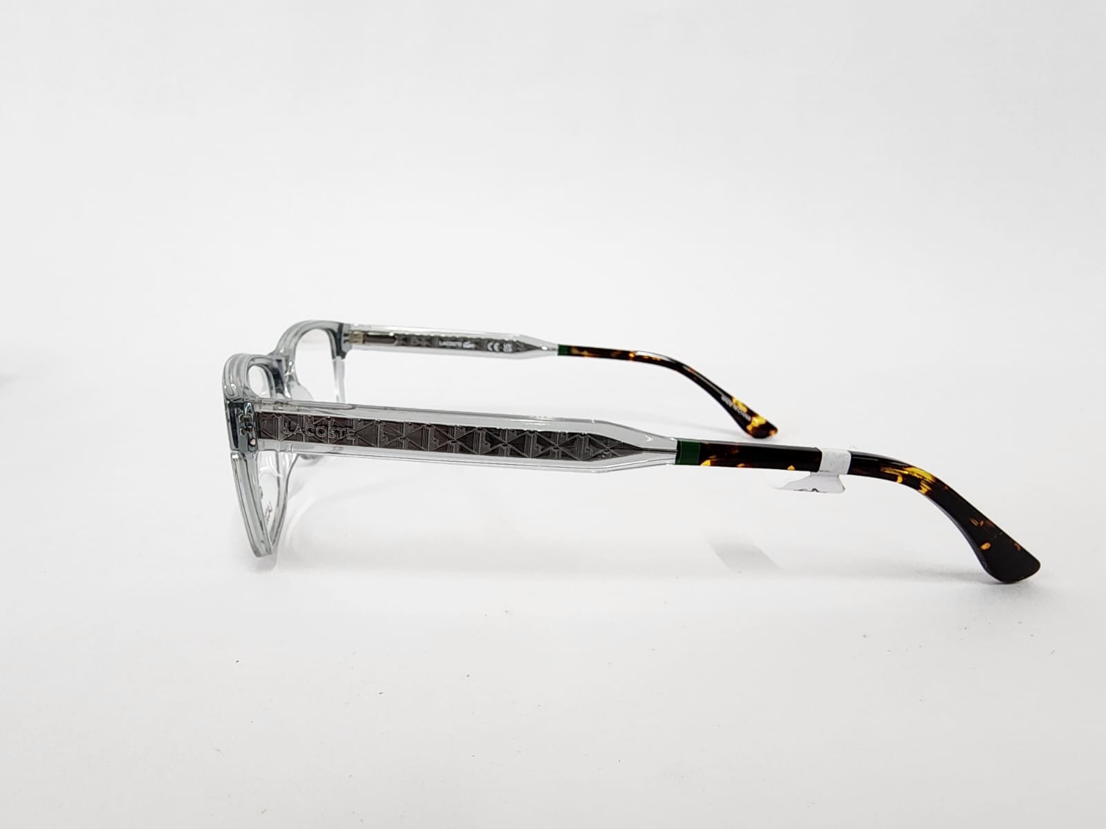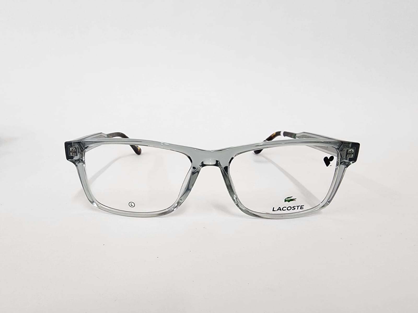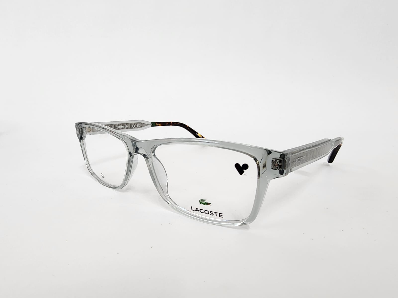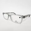 Montura rectangular confeccionada en acetato transparente gris, ligera y versátil. Su diseño combina un look sofisticado y minimalista con gran comodidad para uso cotidiano con lentes graduadas.