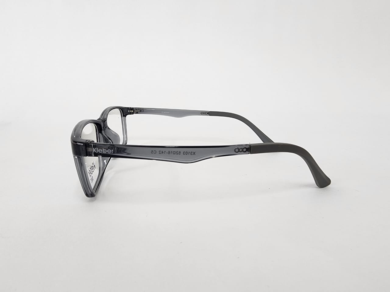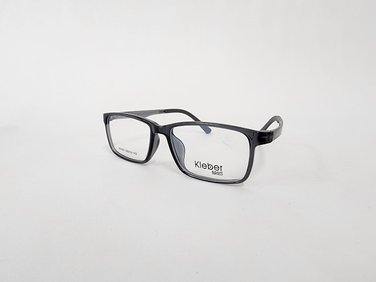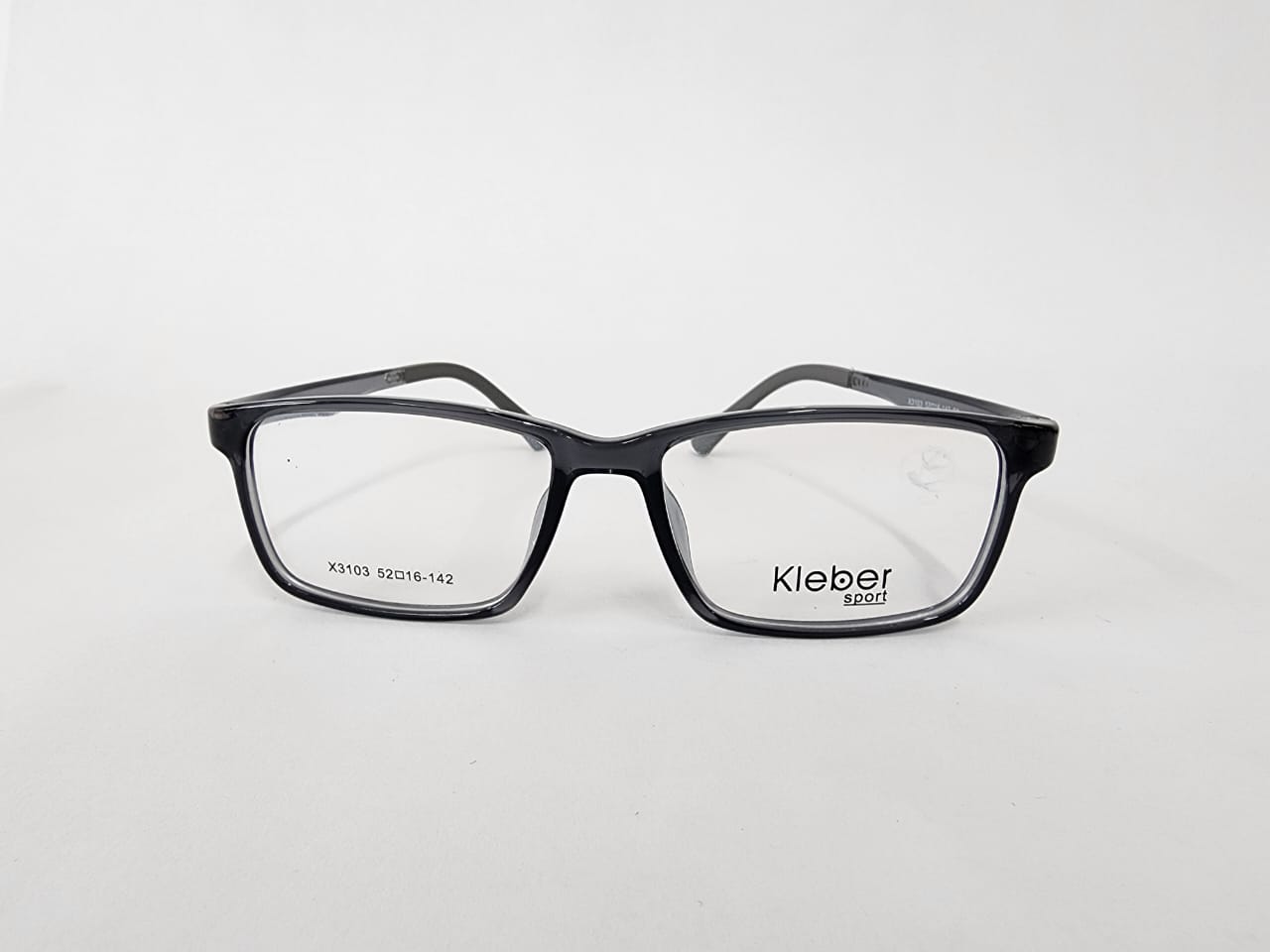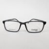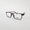 Montura rectangular de acetato, color negro con acabados en gris translucido.
