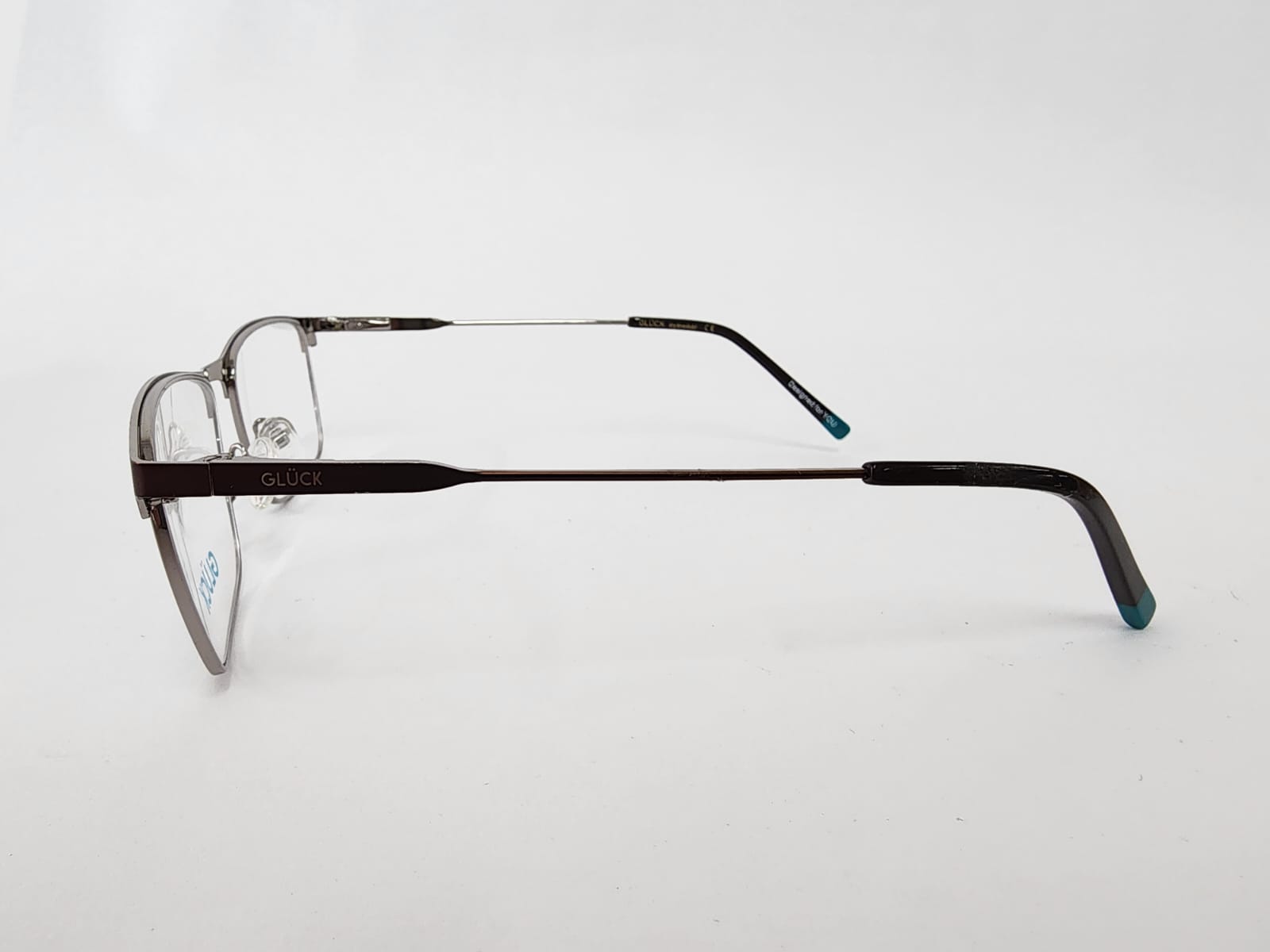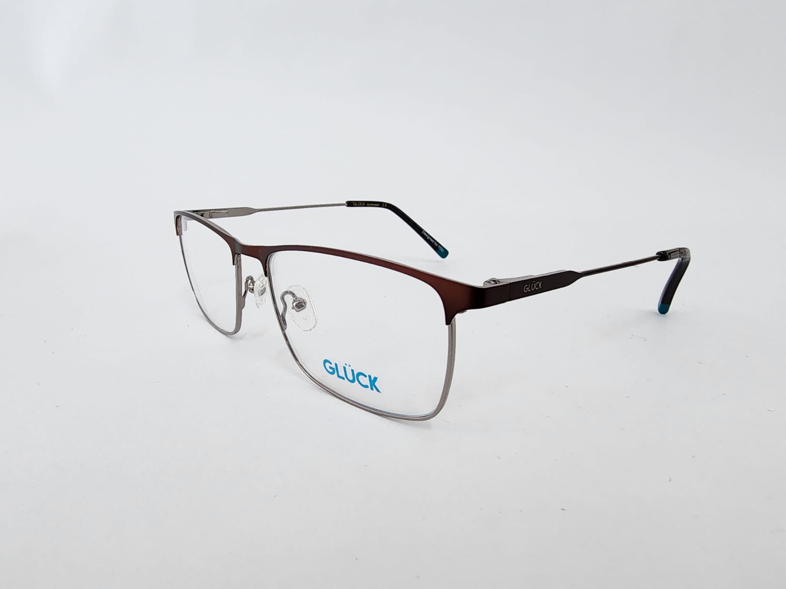 Montura metalica de color marron de detalles en verde agua marina, con forma rectangular comoda para cualquier tipo de cara.