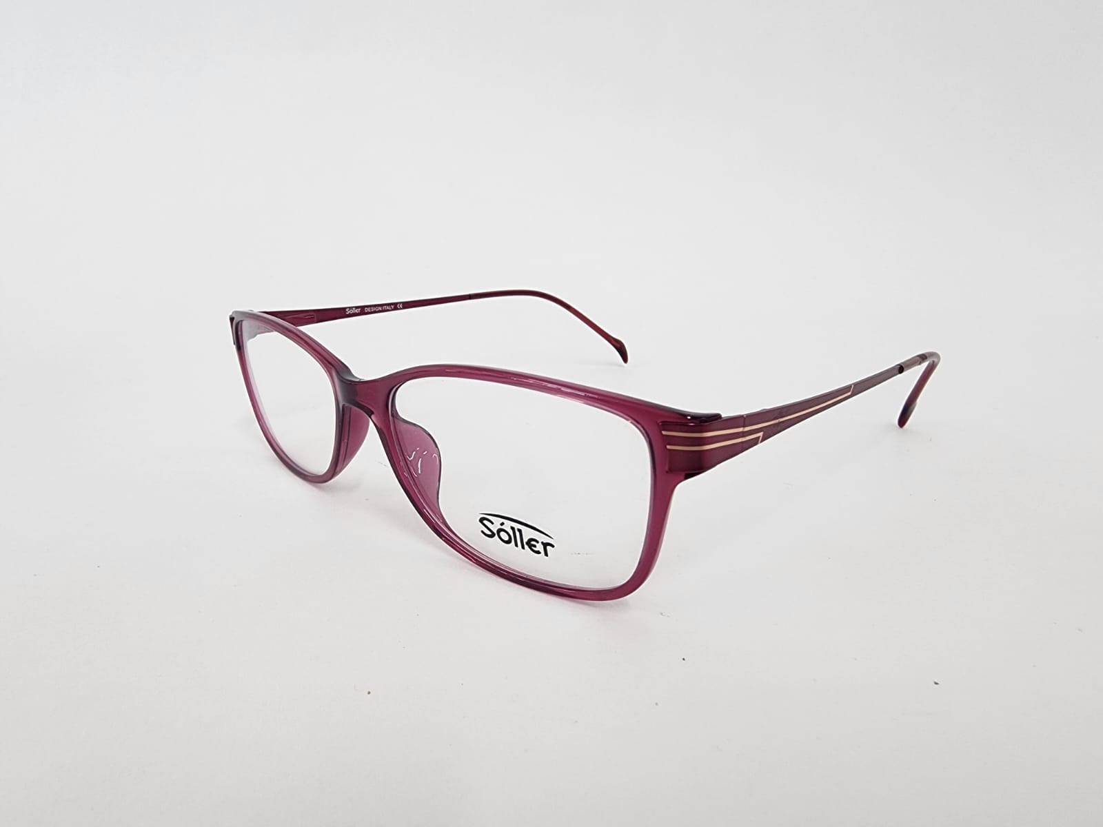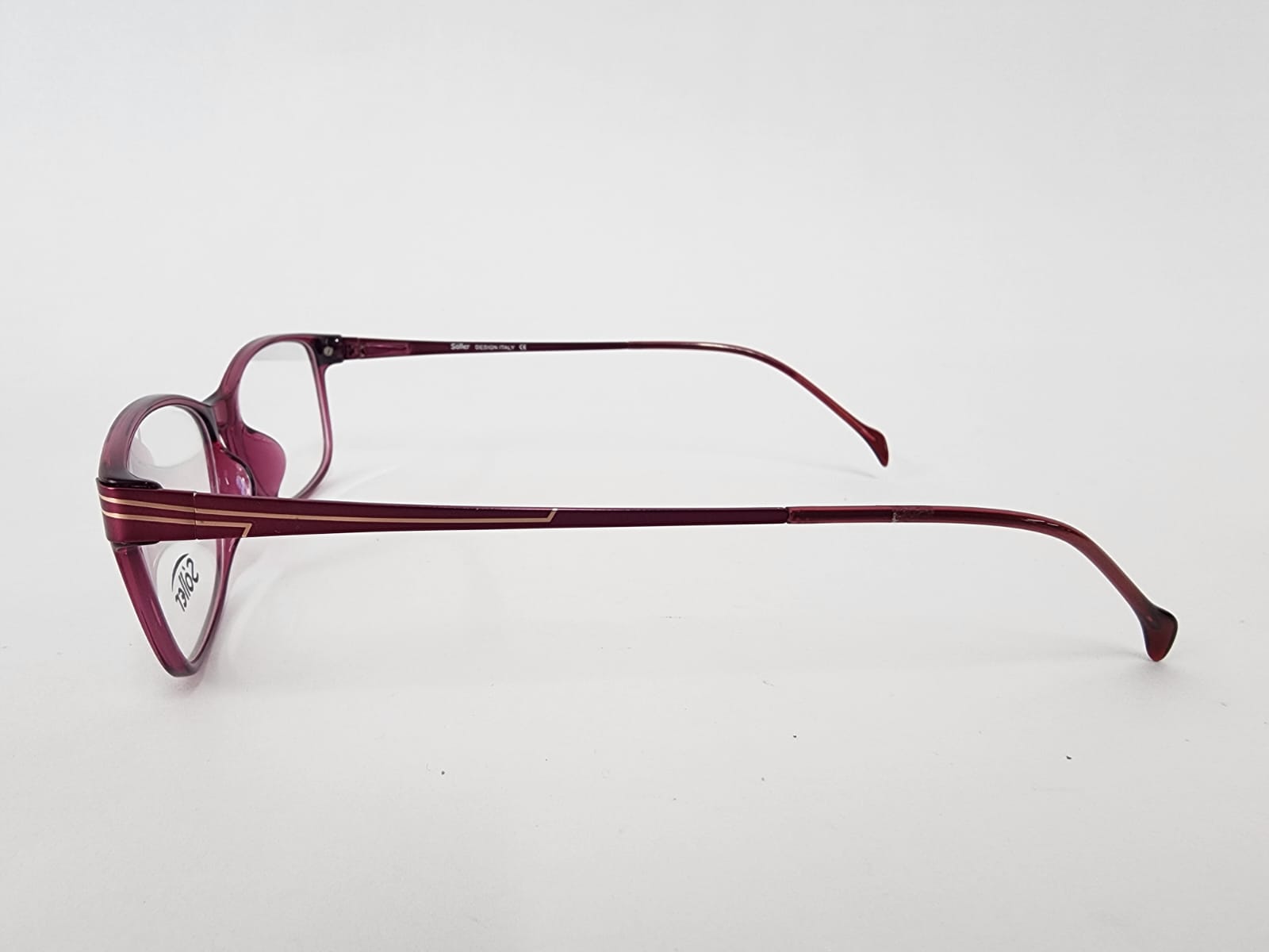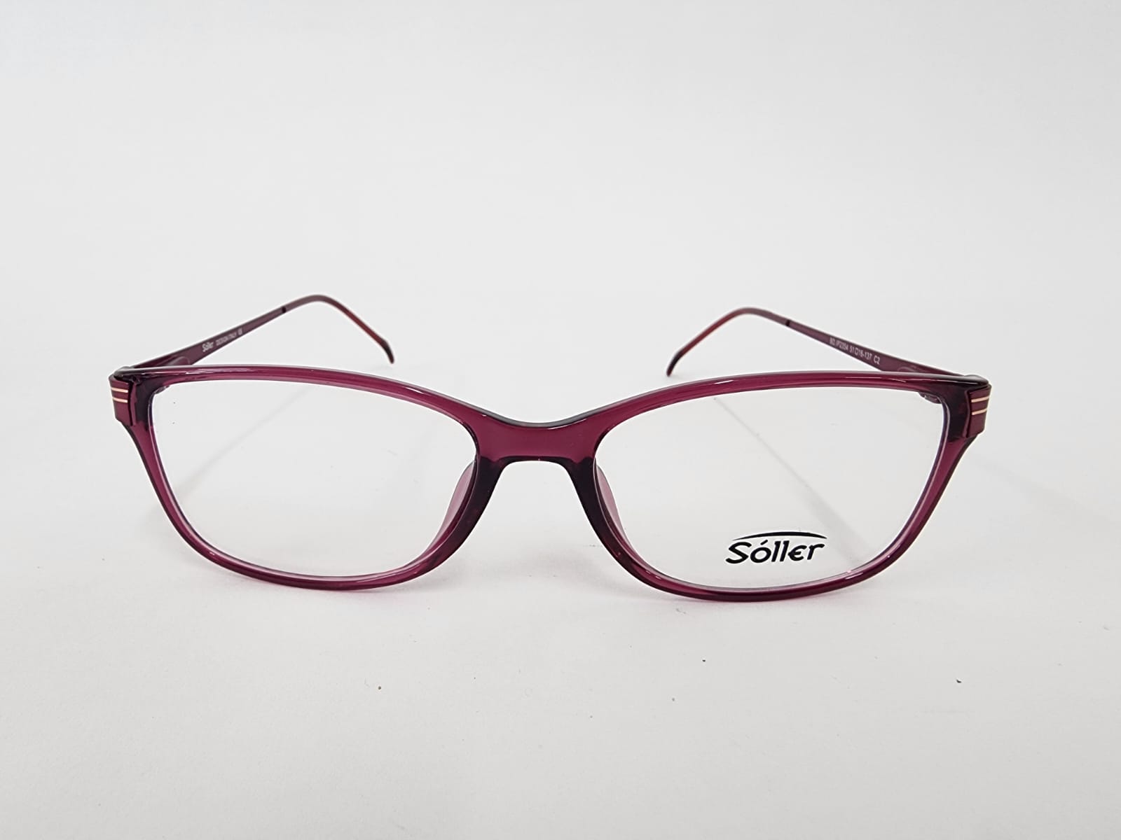 Montura en acetato frontal de color rosa o fuzia ,con brazos metalicos de rosa en acabados dorados.