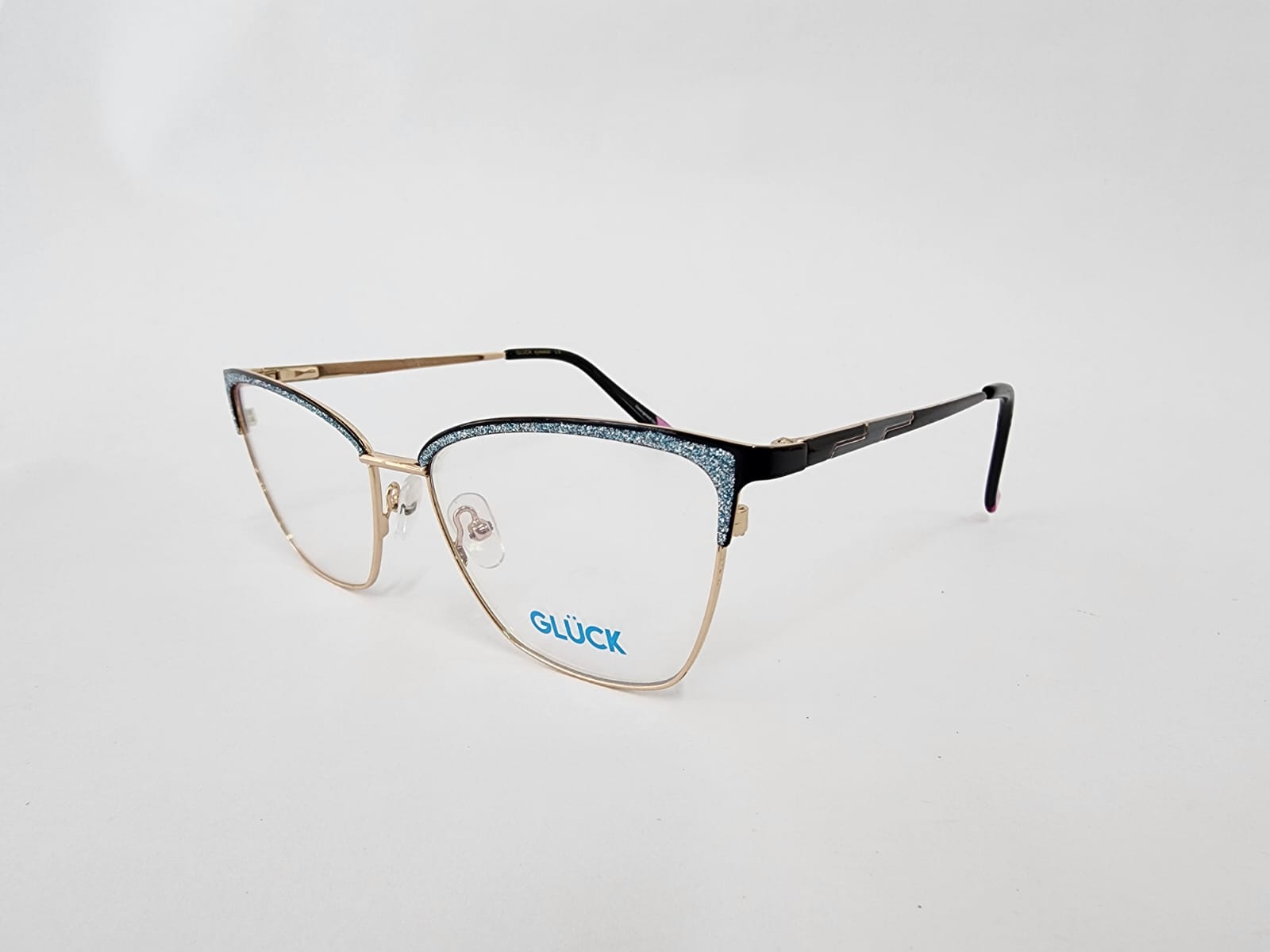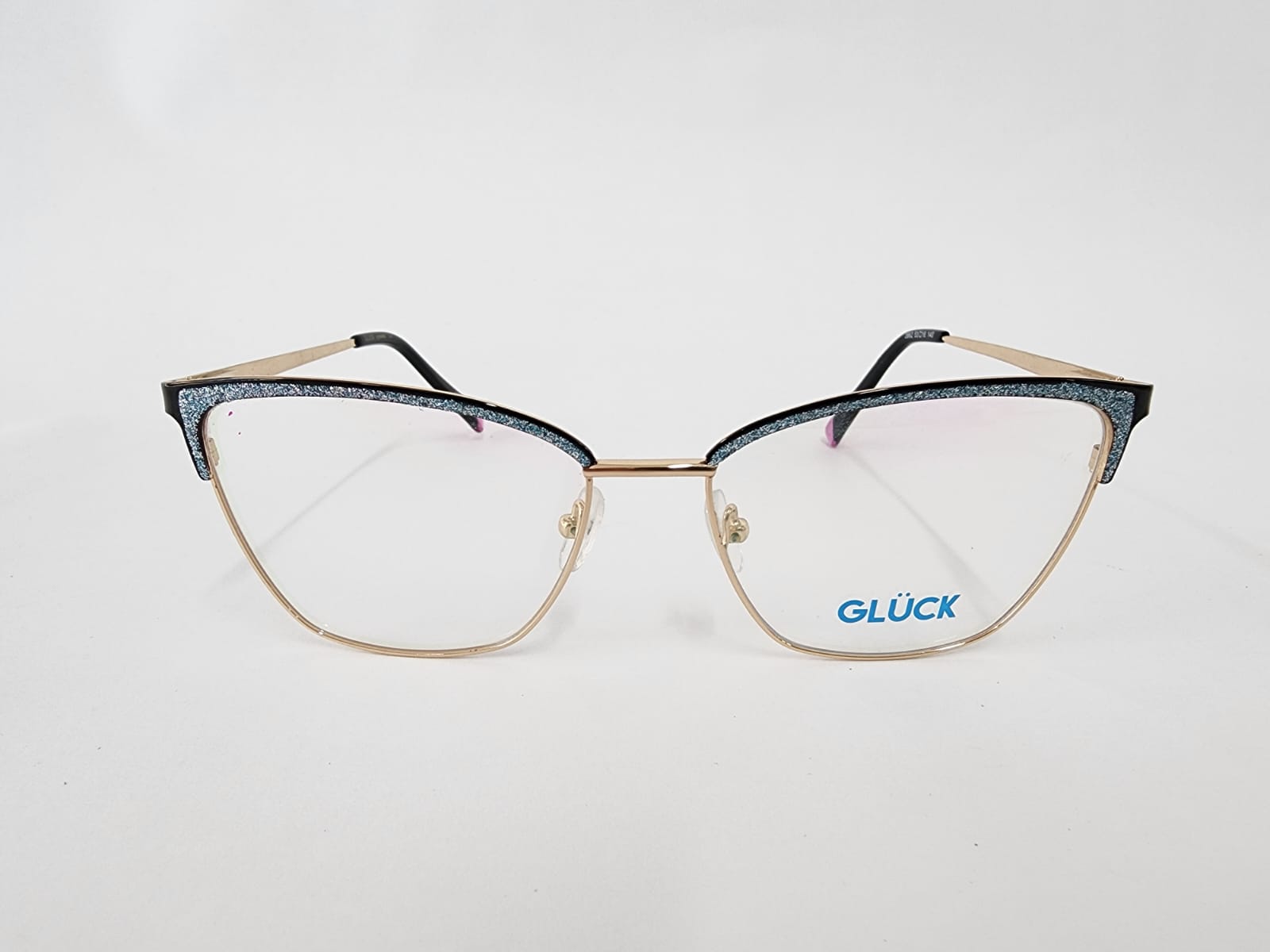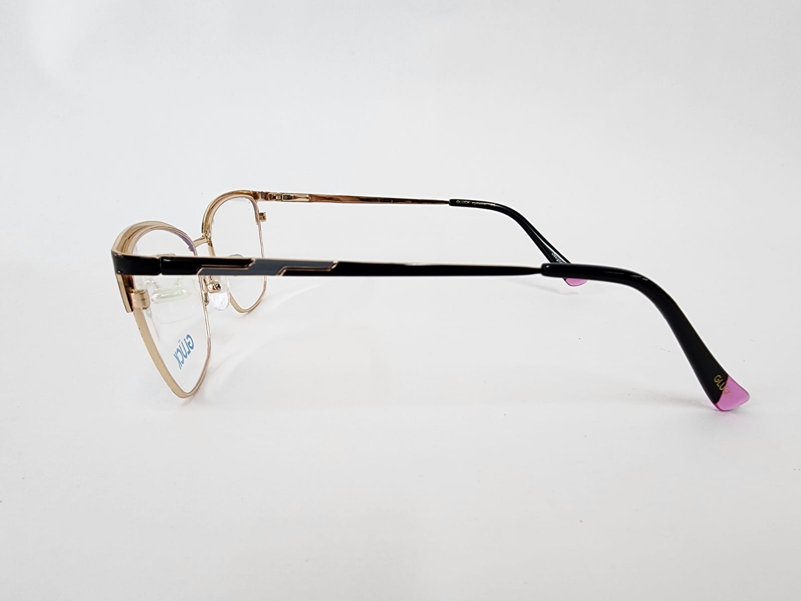 Montura metálica. aro completo dorado forma mariposa colores disponibles en negro,rosa,rojo.