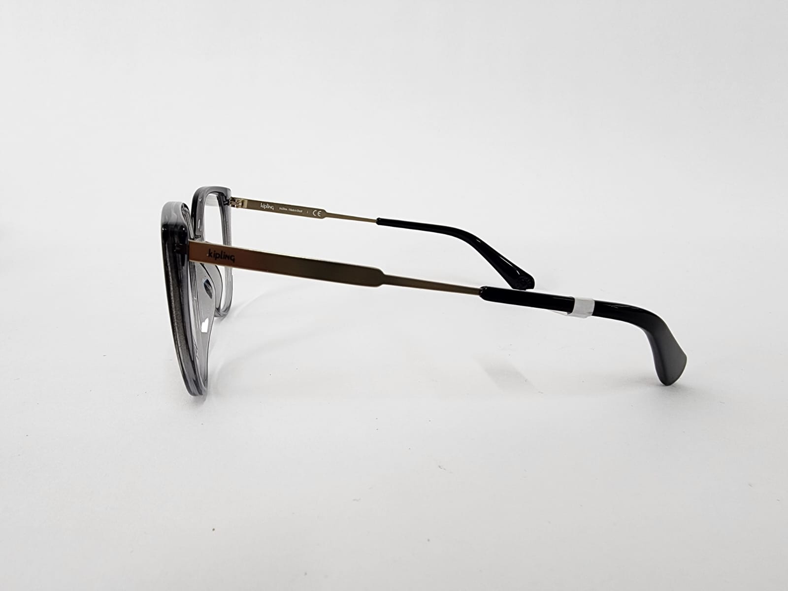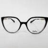 Perfil rectangular con bordes suaves, en acetato negro translucido, sobrio y actual.