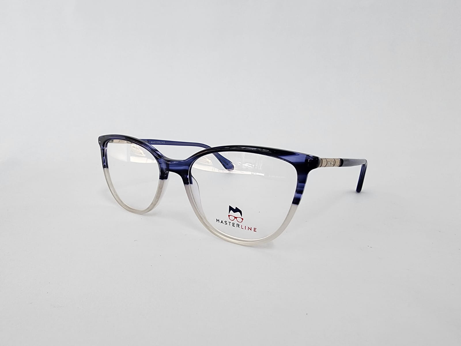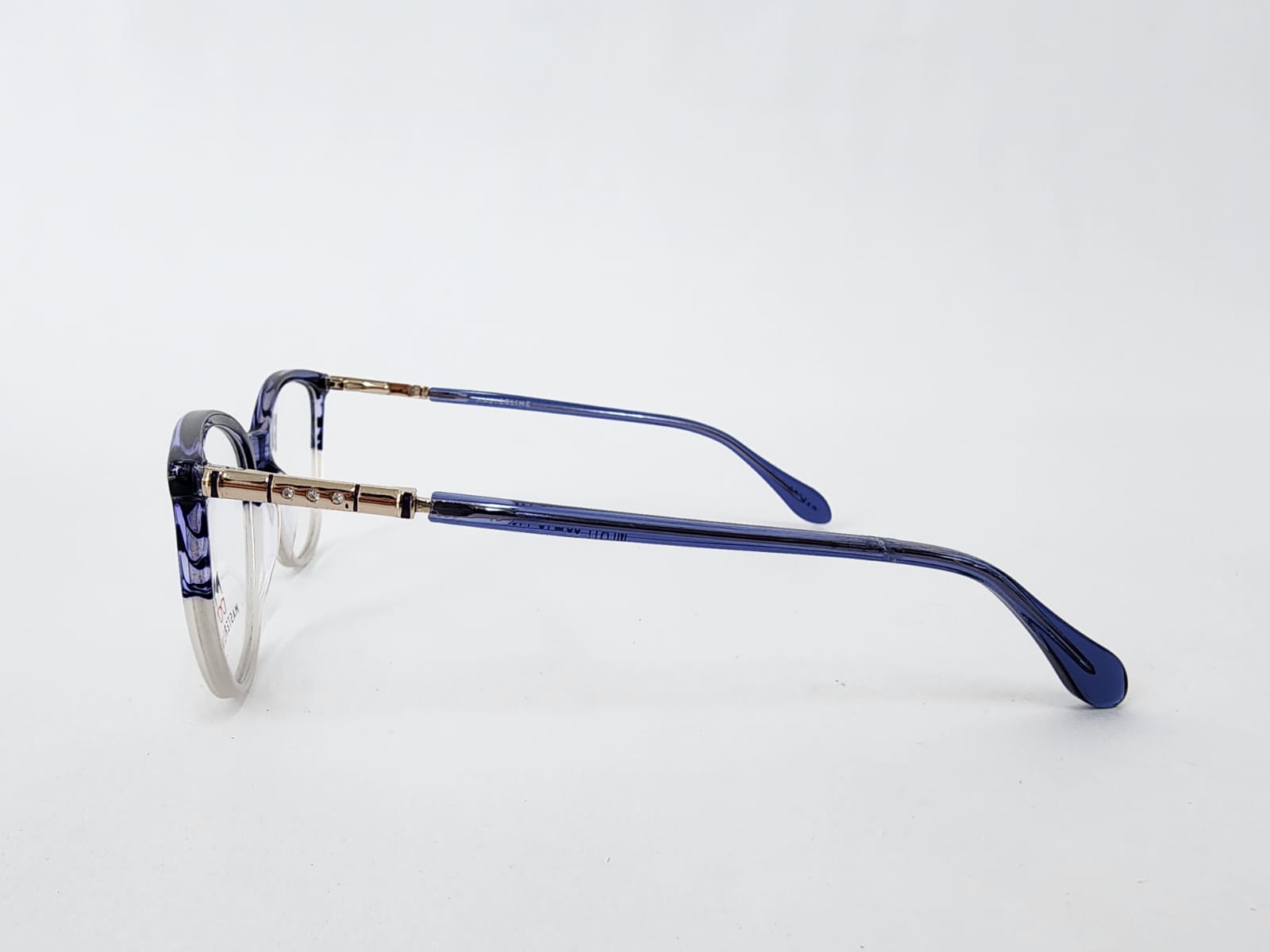 Montura de caetato de color azul translucido,en forma agatada comoda y clasica.