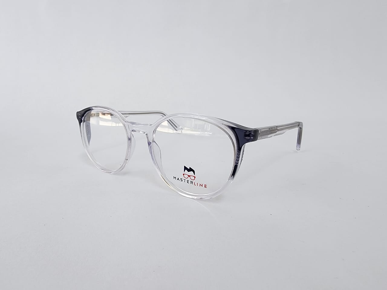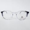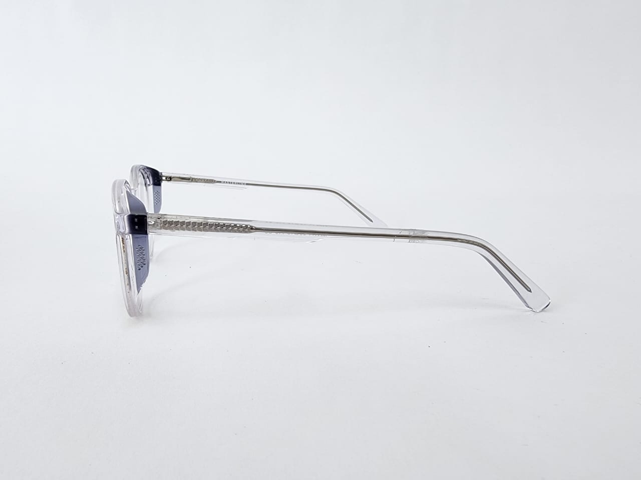 Montura ovalada,completamente de acetato, color transparente con azul translucido.