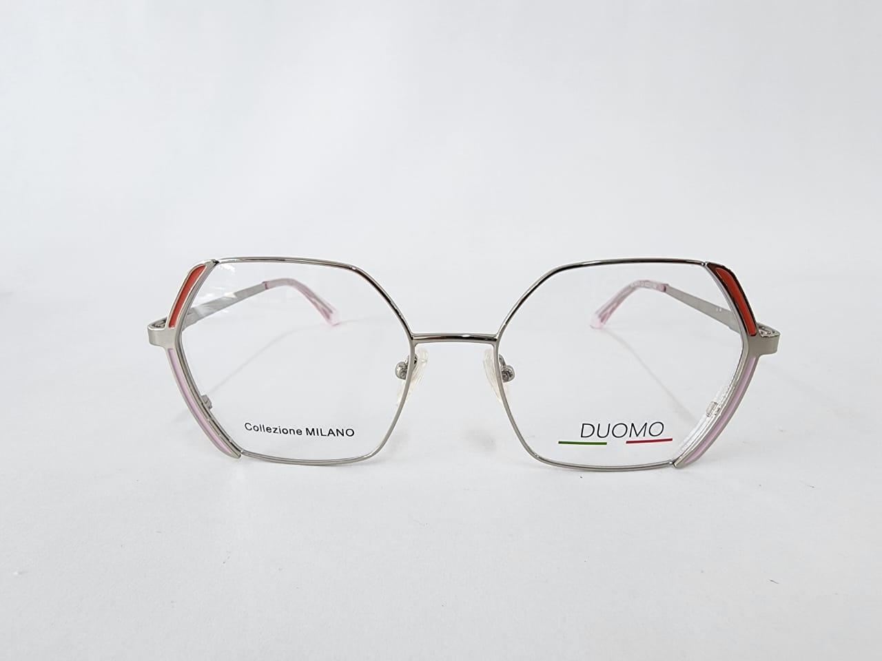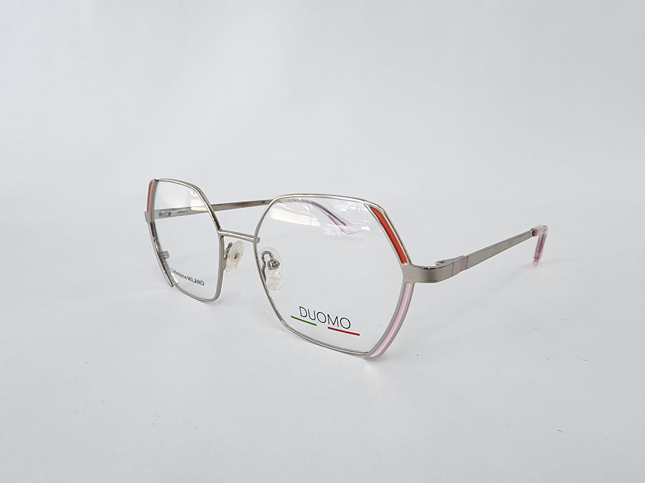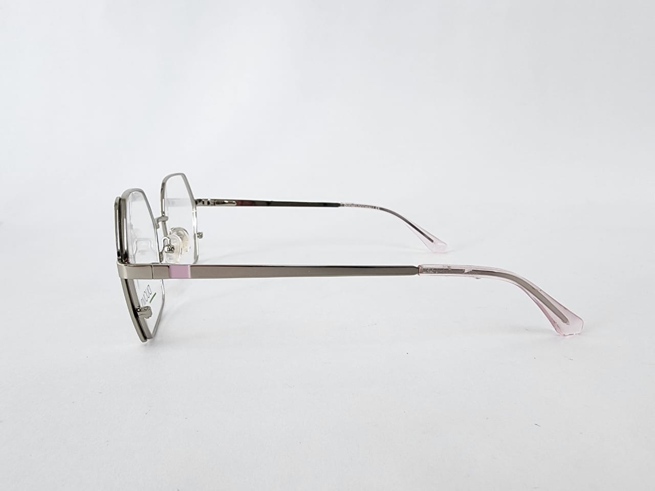 Montura hexagonal,plateada con narajan y rosa en metal,estilo tipo look contemporaneo.