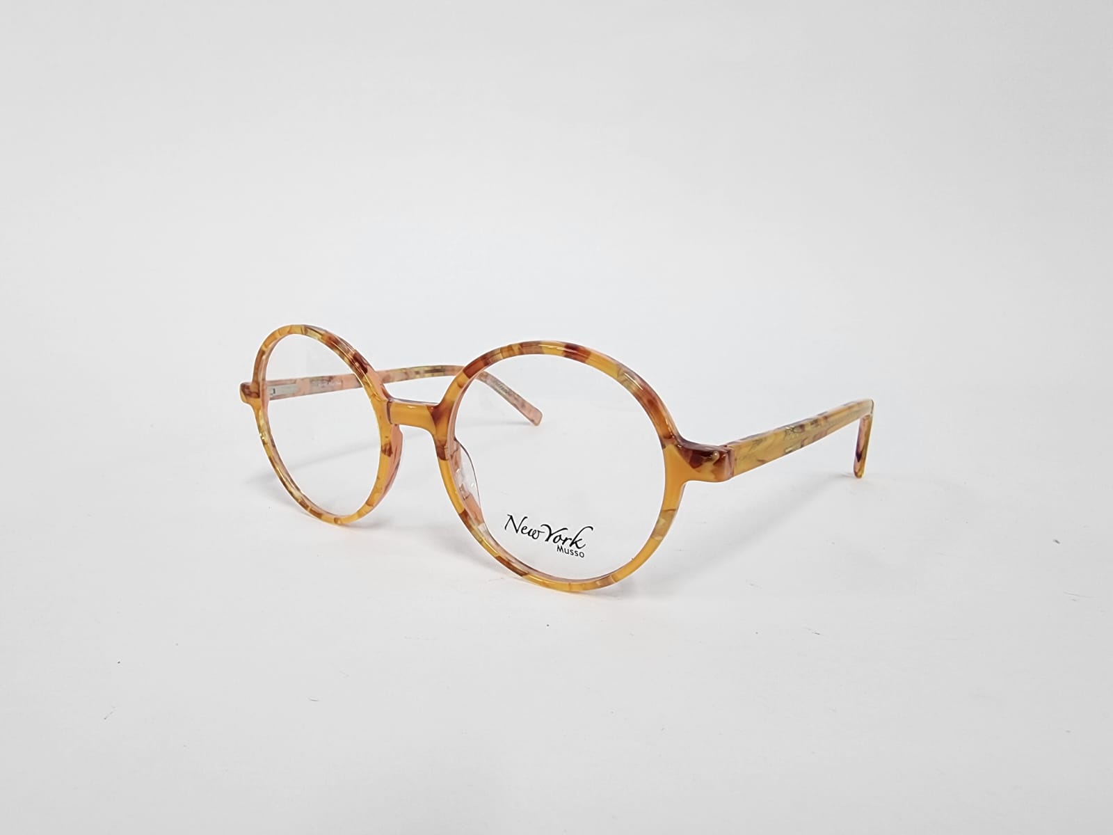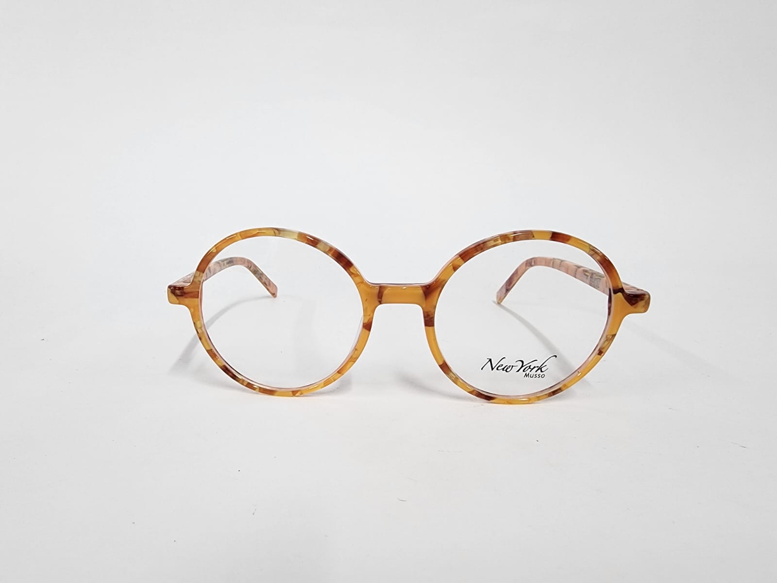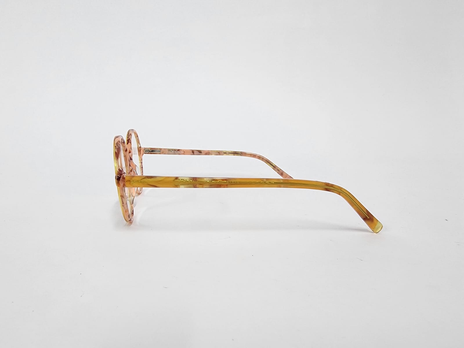Montura redonda de color carey con un marron con naranja , material totalmente de acetato