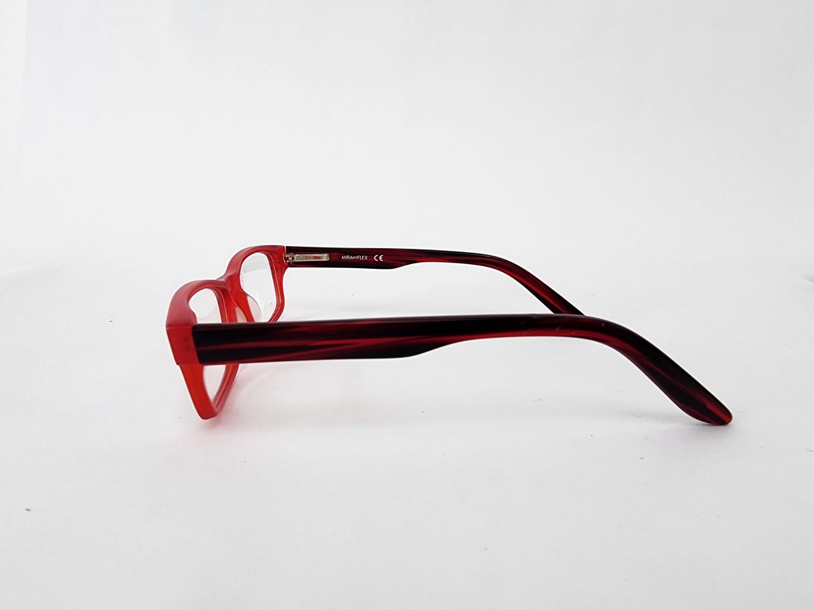 Montura para niño, con forma rectangular y color rojo. Resistente y cómoda para su uso diario.
