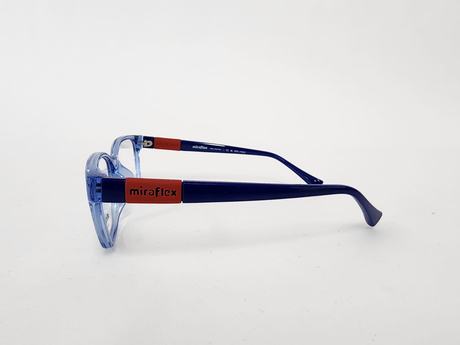 Gafas para niño, con forma rectangular y color azul. Ligeras, seguras y modernas.