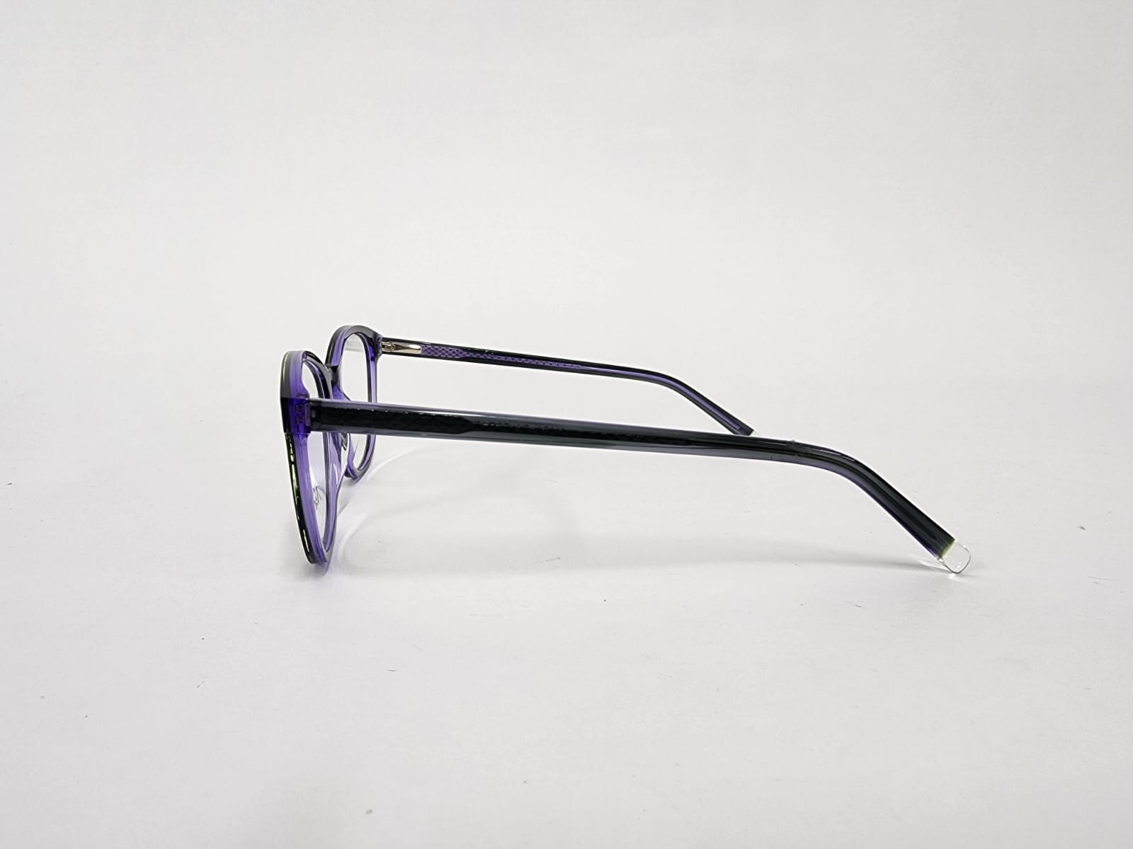 Montura de color morado con verde translucido ,totalmente de acetato.